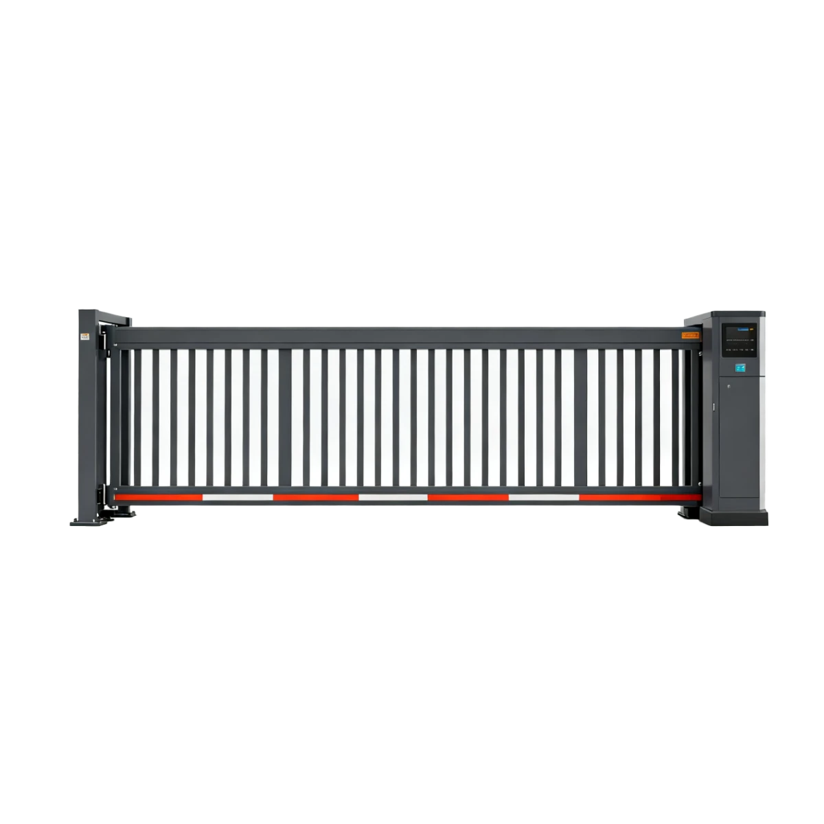 一、门体特点1、型材材质:6061,硬度高,抗压力、冲击力强!2、型材规格:底梁:150mmx90mmx3.0mm;顶梁:150mmx90mmx3.0mm;主框:130mmx110mmx3.0mm;竖杆:50mmx30mmx1.0mm;3、走线:门体走线采用坦克链条,是隐藏在主型材里面不外露,抗老化、抗风雪、安全性强。4、颜色:很多的厂家采用的普通粉末,一般